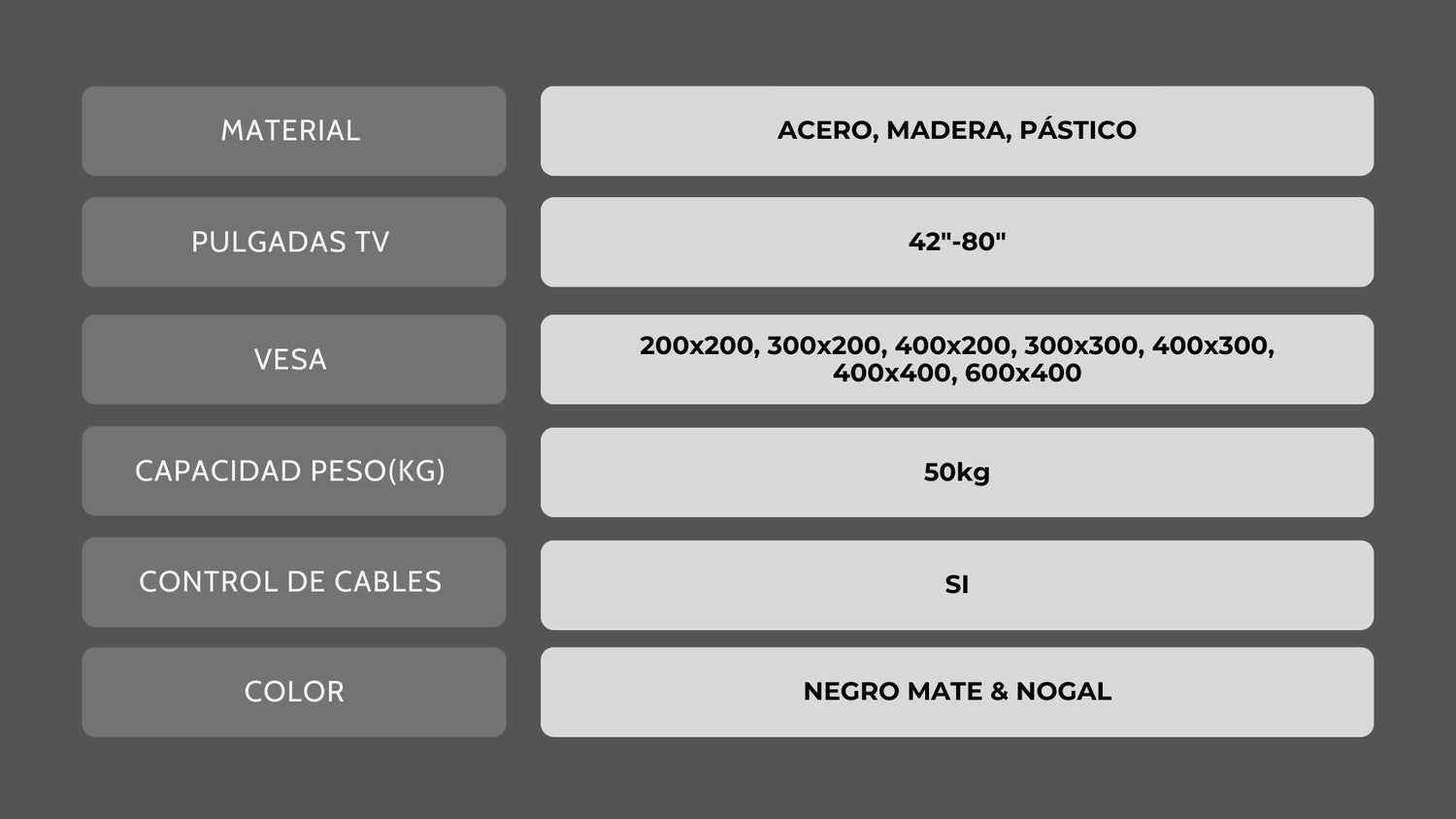 Nuestros soportes de TV están diseñados para dimensiones de 40" hasta 80" pulgadas.