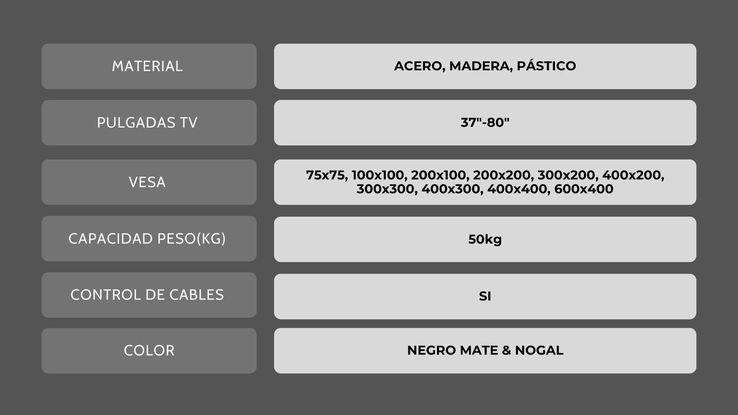 Nuestros soportes de TV están diseñados para dimensiones de 40" hasta 80" pulgadas.